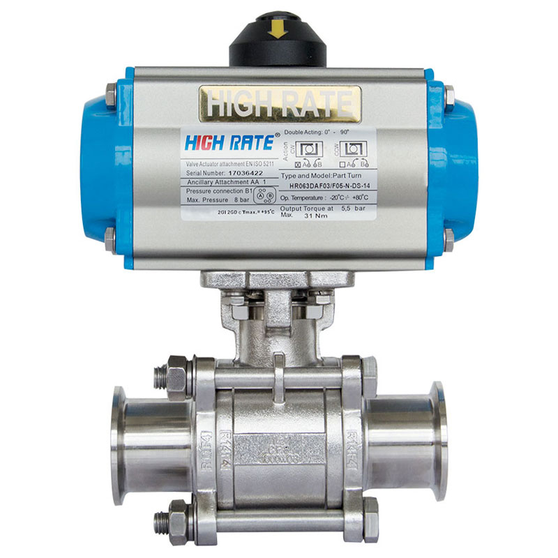 一、衛生級氣動蝶閥執行機構衛生級氣動蝶閥采用齒輪齒條式角行程氣動執行器,有雙作用式和單作用式(彈簧復位),齒輪傳動,安全可靠;大口徑閥門采用拔叉式氣動執行器,拔叉式傳動,結構合理,輸出扭矩大,有雙作用式和單作用式。 1 、齒輪齒條式雙活塞,輸出力矩大,體積小。 2 、氣缸選用鋁金材料,重量輕、外形美觀..